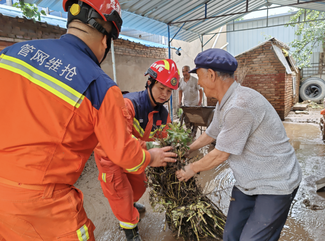 国家管网集团兰州维抢修中心抢险队伍抵达后,迅速架设应急照明设备,点亮夜间救援通道;组织力量深入受灾区域,全力帮助群众清理淤泥,畅通道路。